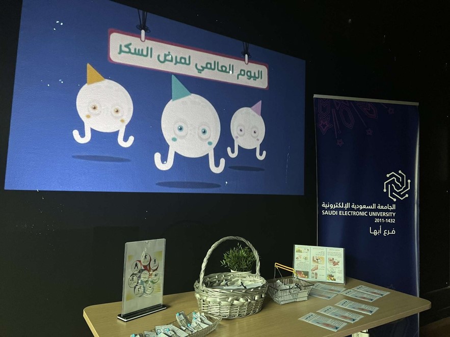 نظم فرع الجامعة السعودية الإلكترونية بأبها، في شطري الطلاب والطالبات، فعالية توعوية بالتزامن مع اليوم العالمي للسكري، الذي يوافق 14 نوفمبر من كل عام.