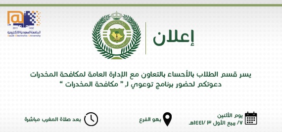 يسر فرع الأحساء دعوتكم لحضور البرنامج التوعوي لمكافحة المخدرات