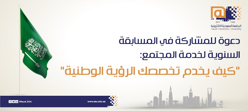 تعلن وكالة الجامعة لشؤون الطالبات في الجامعة السعودية الإلكترونية عن استئناف المسابقة السنوية لخدمة المجتمع: كيف يخدم تخصصك الرؤية الوطنية.