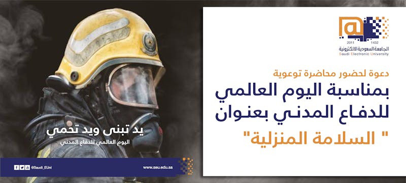 يسر عمادة القبول وشؤون الطلاب وإدارة الأمن والسلامة بالتعاون مع شعبة الدفاع المدني بشمال الرياض دعوتكم لحضور محاضرة توعوية بعنوان