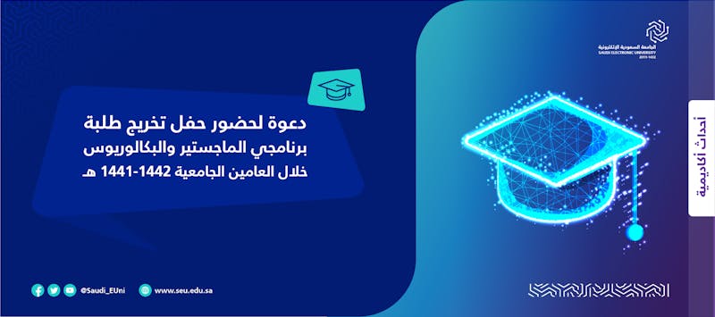 تتشرف الجامعة السعودية الإلكترونية بدعوتكم لحضور حفل تخريج طلبة برنامجي الماجستير والبكالوريوس