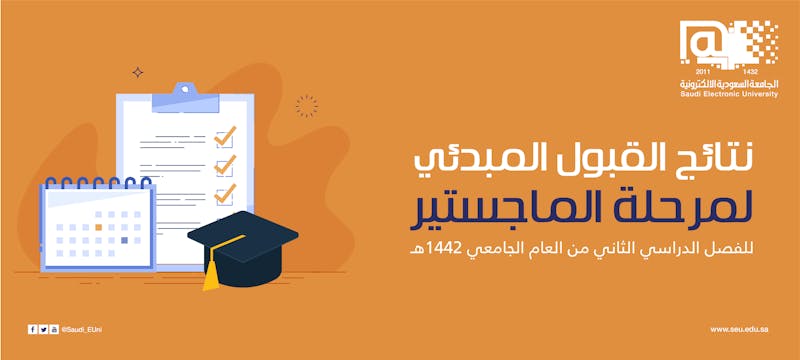 يسر عمادة الدراسات العليا أن تعلن عن نتائج القبول المبدئي لمرحلة الماجستير للفصل الدراسي الثاني من العام الجامعي 1442هـ.