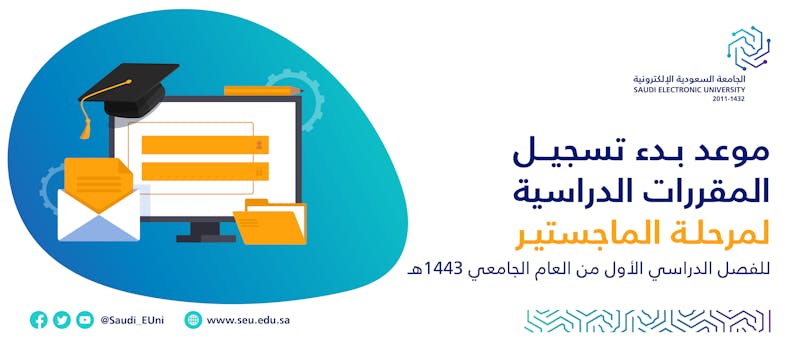 تعلن عمادة الدراسات العليا عن موعد بدء التسجيل لمقررات مرحلة الماجستير للفصل الدراسي الأول من العام الجامعي 1443هـ