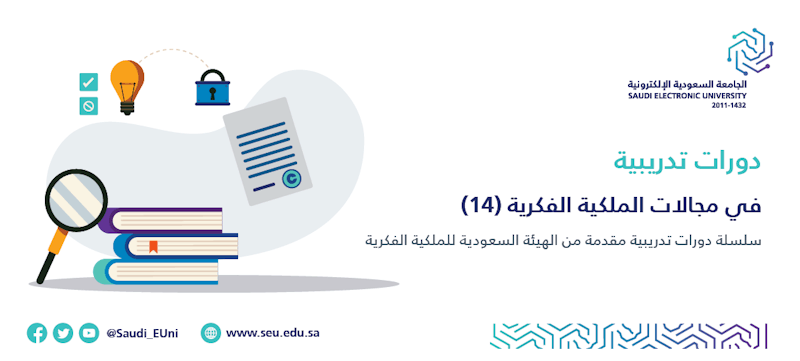 تعلن وحدة دعم الملكية الفكرية بالجامعة السعودية الإلكترونية عن توفر مجموعة من الدورات التدريبية المتنوعة، والتي تنظمها الهيئة السعودية للملكية الفكرية للمهتمين في مجالات الملكية الفكرية، وللتسجيل في هذه الدورات يرجى اتباع رابط التسجيل لكل دورة تدريبية في القائمة أدناه: