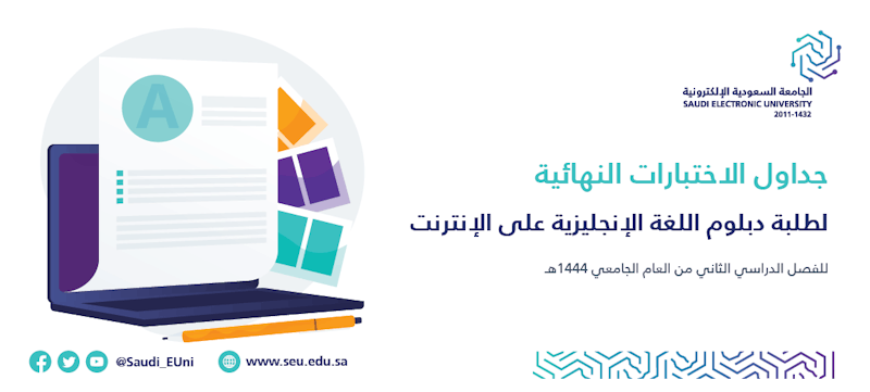 تعلن وكالة الجامعة للشؤون التعليمية عن جدول الاختبارات النهائية لطلبة برنامج دبلوم اللغة الإنجليزية على الإنترنت