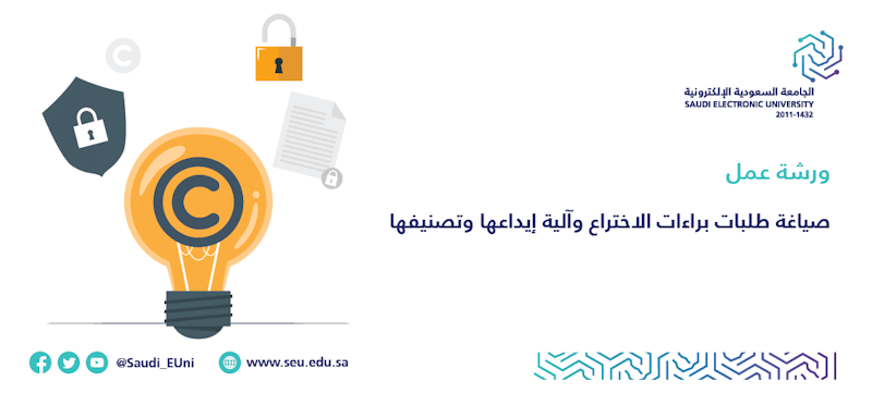 يسر وحدة دعم الملكية الفكرية بالتعاون مع الهيئة السعودية للملكية الفكرية دعوتكم لحضور ورشة عمل بعنوان: صياغة طلبات براءات الاختراع وآلية إيداعها وتصنيفها.
