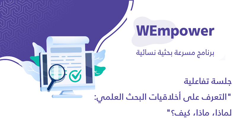 يسر لجنة المسرعة البحثية النسائية دعوتكم لحضور الجلسة التفاعلية "التعرف على أخلاقيات البحث العلمي: لماذا، ماذا، كيف؟"