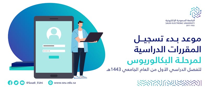 تعلن وكالة الجامعة للشؤون التعليمية عن موعد بدء التسجيل لمقررات مرحلة البكالوريوس للفصل الدراسي الأول من العام الجامعي 1443هـ.