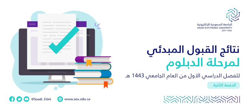 تهنئ الجامعة السعودية الإلكترونية المقبولين لمرحلة الدبلوم للفصل الدراسي الأول للعام الجامعي 1443هـ
