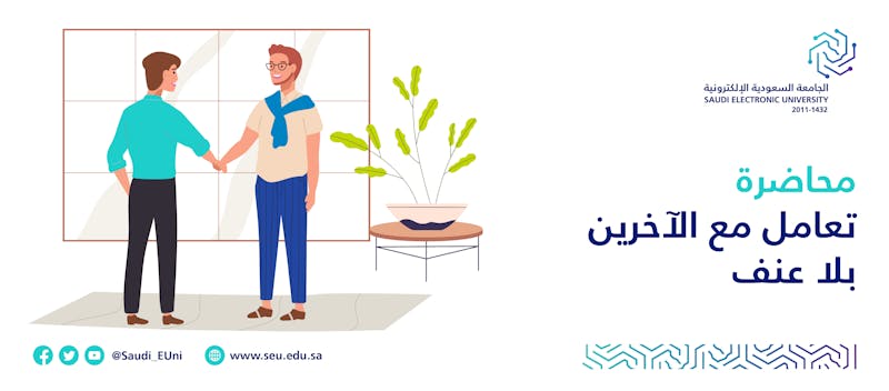 يسر الجامعة السعودية الإلكترونية دعوتكم لحضور محاضرة بعنوان: تعامل مع الآخرين بلا عنف