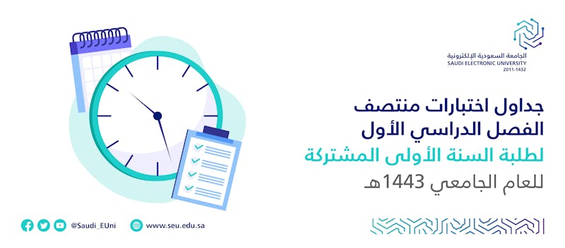 يسر عمادة السنة الأولى المشتركة أن تعلن لطلبتها عن جدول اختبارات منتصف الفصل الدراسي الأول للعام الجامعي 1443هـ ـ والموحد بين جميع فروع الجامعة بقسمي (الطلاب/الطالبات). والتي ستقام عن بعد لجميع المقررات عبر المتصفح الآمن (SUMADI) ونظام البلاك بورد وباستخدام تقنية المراقب الذكي على الطلبة بمواعيد الاختبارات: جدول الطلاب: هنا