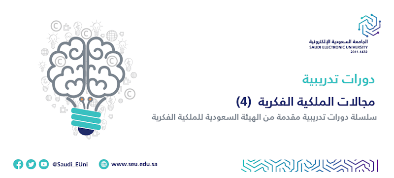 تعلن وحدة دعم الملكية الفكرية بالجامعة السعودية الإلكترونية عن توفر مجموعة من الدورات التدريبية المتنوعة، والتي تنظمها الهيئة السعودية للملكية الفكرية للمهتمين في مجالات الملكية الفكرية، وللتسجيل في هذه الدورات يرجى اتباع رابط التسجيل لكل دورة تدريبية في القائمة أدناه: