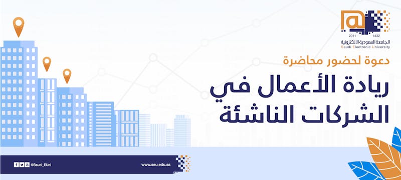 يسر فرع الدمام بالتعاون مع كلية العلوم الإدارية والمالية دعوتكم لحضور محاضرة بعنوان: ريادة الأعمال في الشركات الناشئة.