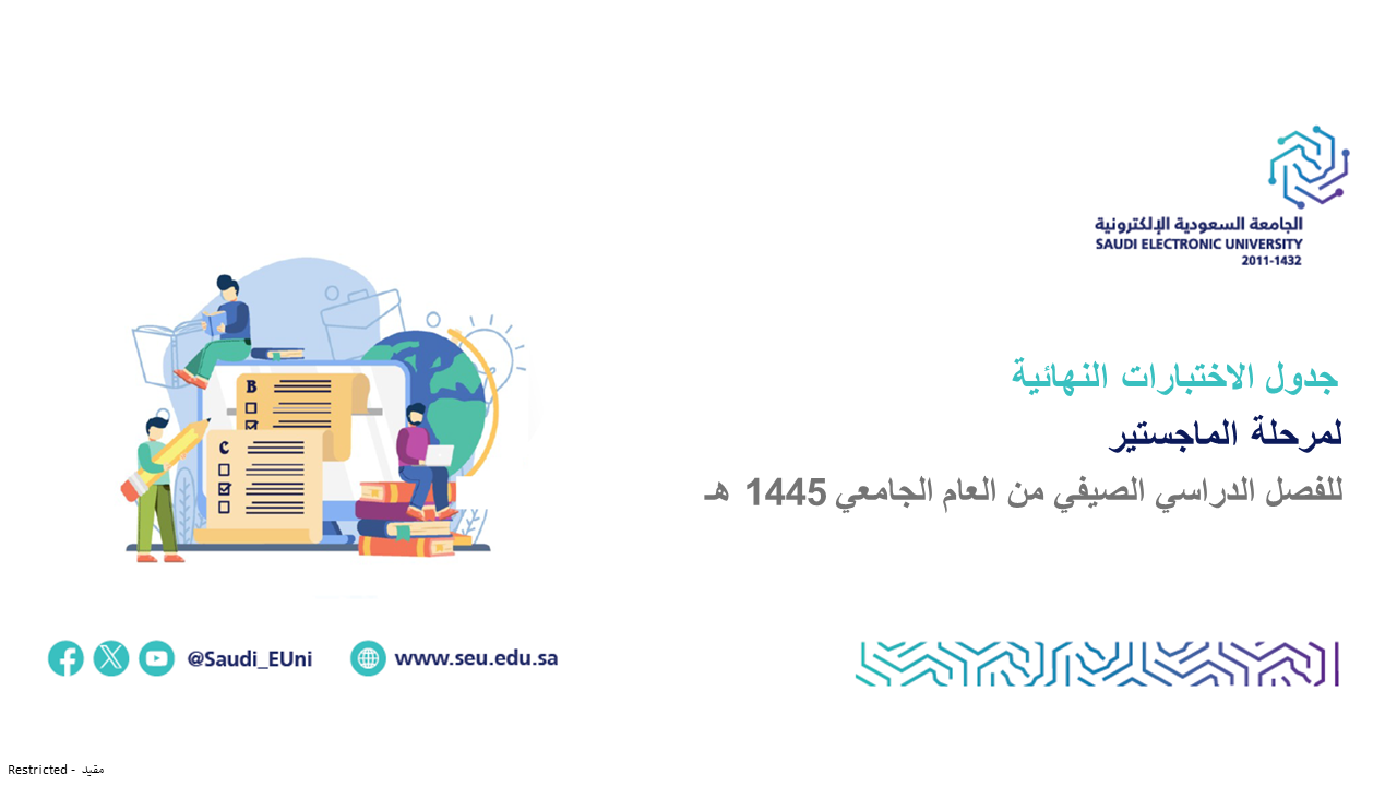 جداول الاختبارات النهائية لطلبة الماجستير للفصل الدراسي الصيفي من العام الجامعي 1445 هـ
