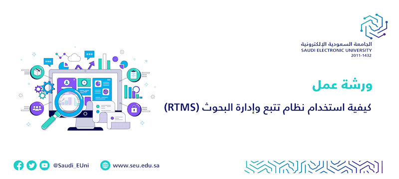 يسر عمادة البحث العلمي دعوتكم لحضور ورشة عمل بعنوان: كيفية استخدام نظام تتبع وإدارة البحوث (RTMS).