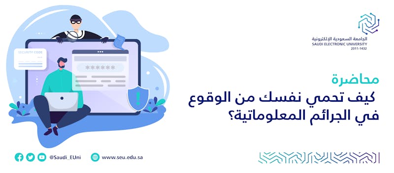 يسر وحدة الأنشطة الطلابية بفرع الجامعة بالدمام دعوتكم لحضور محاضرة توعوية بعنوان: كيف تحمي نفسك من الوقوع في الجرائم المعلوماتية؟