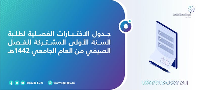 تعلن عمادة السنة الأولى المشتركة عن جداول الاختبارات الفصلية لطلبة السنة الأولى المشتركة للفصل الدراسي الصيفي للعام الجامعي 1442هـ ـ والموحد بين جميع فروع الجامعة بقسمي (الطلاب/الطالبات).