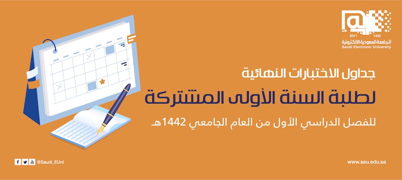 يسر عمادة السنة الأولى المشتركة أن تعلن لطلبتها عن مواعيد الاختبارات النهائية للفصل الدراسي الأول من العام الجامعي 1442هـ