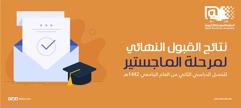 تهنئ عمادة الدراسات العليا الطلبة الحاصلين على القبول النهائي من المتقدمين على برامج الماجستير في الفصل الدراسي الثاني للعام الجامعي 1442هـ.