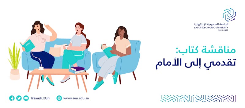 يسر عمادة القبول وشؤون الطلاب متمثلة بنادي تمكين المرأة، دعوتكم لحضور مناقشة كتاب تقدمي إلى الأمام (المرأة، والعمل، وإدارة القيادة)
