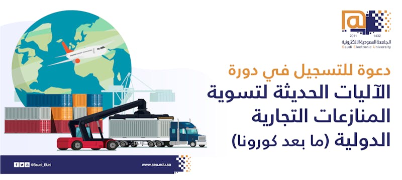 يسر معهد البحوث والدراسات بالجامعة السعودية الإلكترونية دعوتكم للتسجيل في دورة: الآليات الحديثة لتسوية المنازعات التجارية الدولية (ما بعد كورونا).