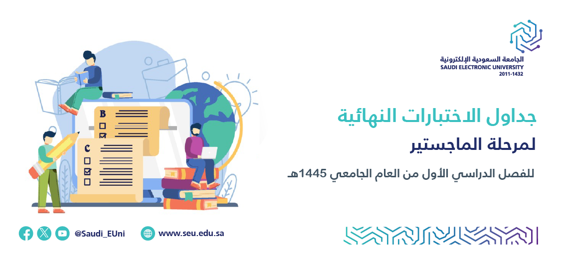 تعلن عمادة الدراسات العليا عن جداول الاختبارات النهائية لطلبة الماجستير للفصل الدراسي الأول للعام الجامعي 1445هـ.