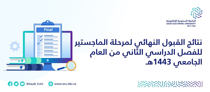 يسر عمادة الدراسات العليا أن تعلن عن نتائج القبول النهائي لبرامج الماجستير للفصل الدراسي الثاني من العام الأكاديمي 1443هـ