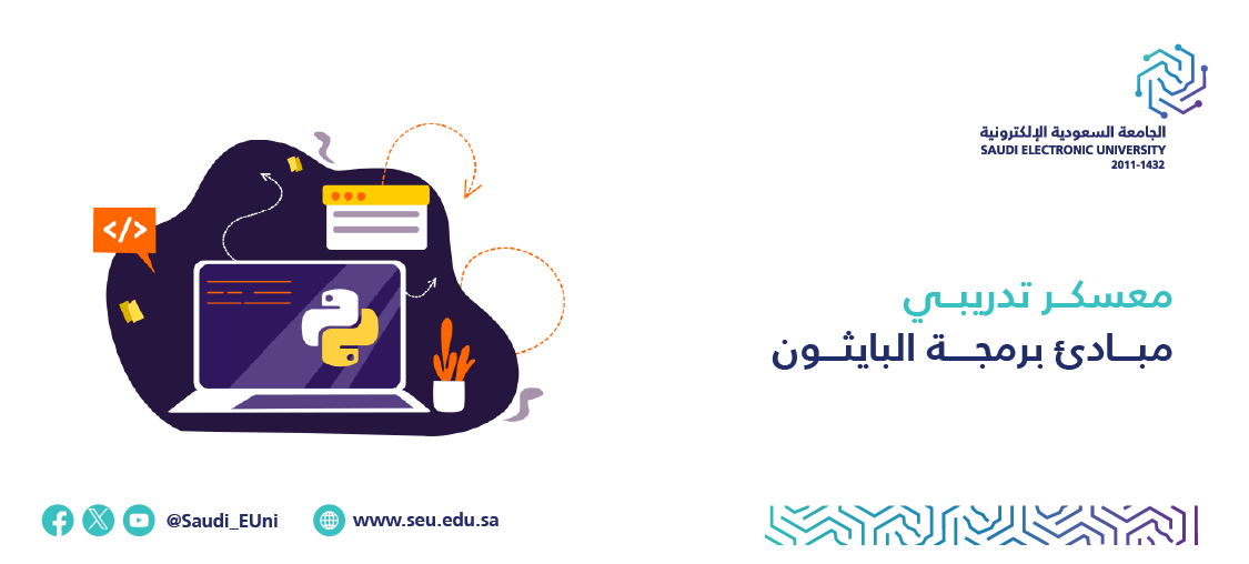 يسر الجامعة السعودية الإلكترونية ممثلة بفرع المدينة المنورة وعمادة شؤون الطلاب، دعوتكم لحضور المعسكر التدريبي بعنوان: مبادئ برمجة البايثون.