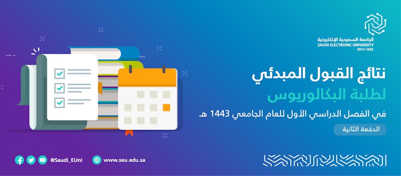 تهنئ الجامعة السعودية الإلكترونية المقبولين لمرحلة البكالوريوس للفصل الدراسي الأول للعام الجامعي 1443هـ (الدفعة الثانية)