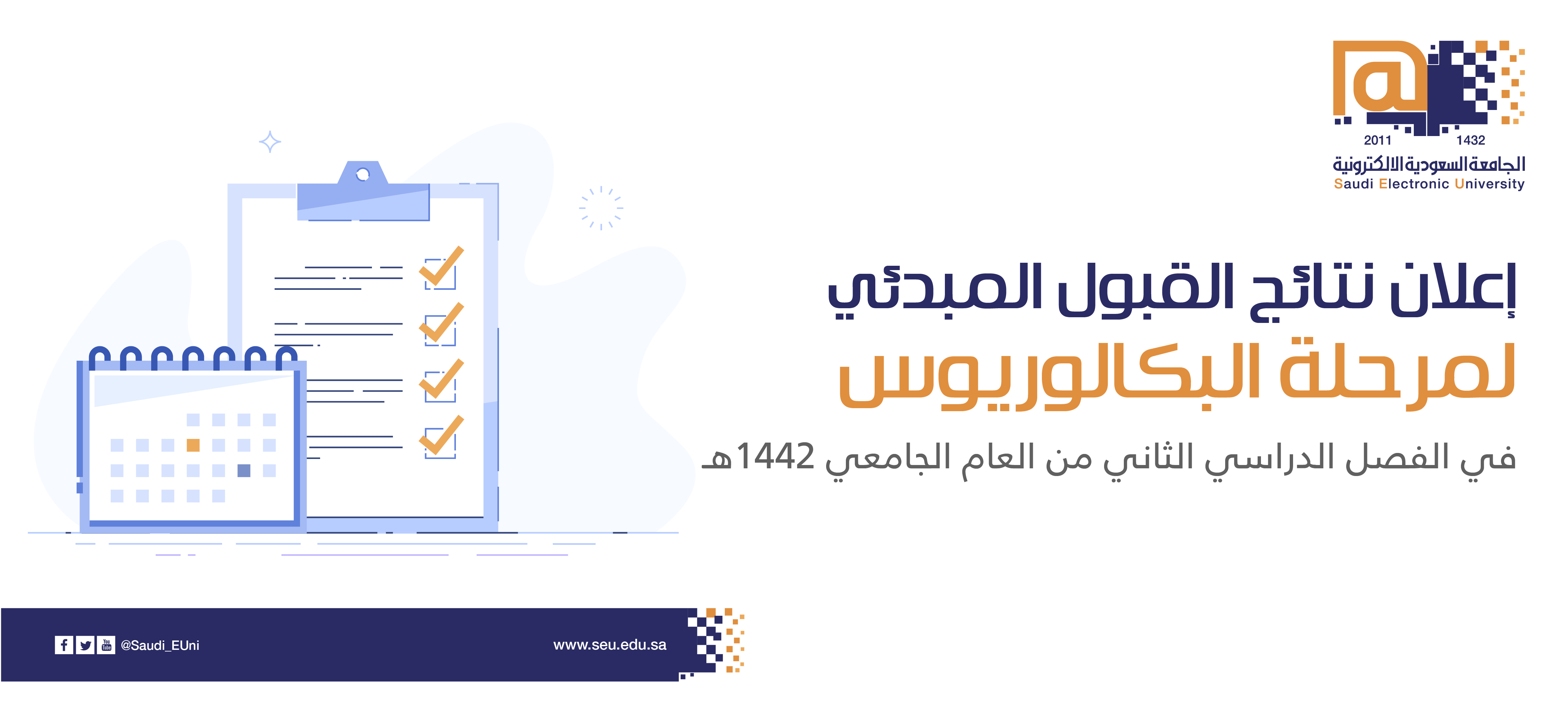 تهنئ الجامعة السعودية الإلكترونية المقبولين في برامج البكالوريوس للفصل الدراسي الثاني من العام الجامعي 1442هـ