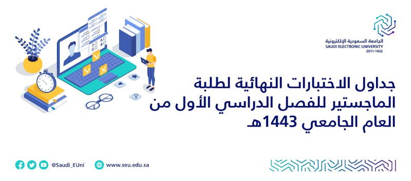 تعلن عمادة الدراسات العليا عن جداول الاختبارات النهائية لطلبة الماجستير للفصل الدراسي الأول للعام الجامعي 1443هـ.