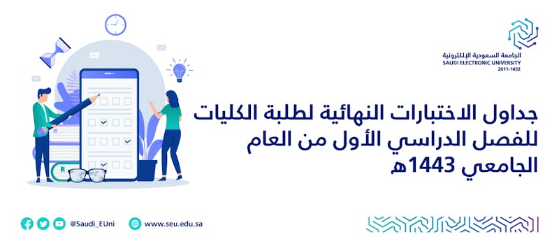 تعلن وكالة الجامعة للشؤون التعليمية عن جداول الاختبارات النهائية لطلبة الكليات للفصل الدراسي الأول من العام الجامعي 1443هـ