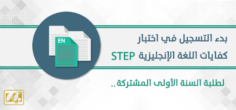 تهيب عمادة السنة الأولى المشتركة بالطلبة المسجلين بمقرر اللغة الإنجليزية في الفصل الداراسي الحالي بضرورة الدخول على موقع قياس والتسجيل في اختبار STEP والذي سيعقد خلال الفترة من 24 / 7 / 1440هـ إلى 13 / 8 / 1440هـ قبل انتهاء المقاعد المحددة.
