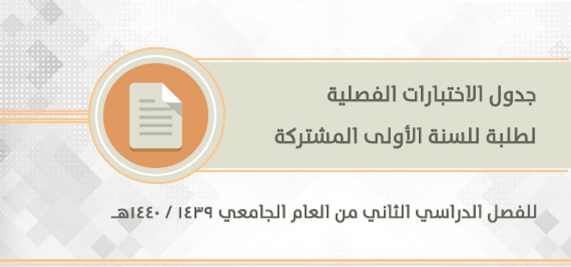 يسر عمادة السنة الأولى المشتركة أن تعلن لطلبتها عن مواعيد اختبارات منتصف الفصل الدراسي الثاني خلال الفترة من يوم الأحد الموافق 1440/6/26هـ إلى يوم الأربعاء الموافق 1440/6/29هـ