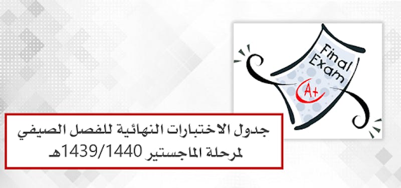 تعلن عمادة الدراسات العليا عن جدول الاختبارات النهائية لطلبة الماجستير للفصل الدراسي الصيفي للعام الجامعي 1439\1440هـ .