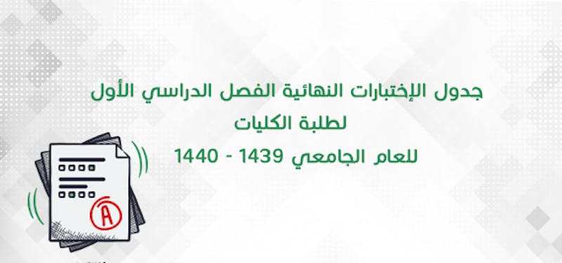 تعلن وكالة الجامعة للشؤون التعليمية عن جدول الاختبارات النهائية لطلبة الكليات للفصل الدراسي الأول للعام الجامعي 1439\1440 هـ