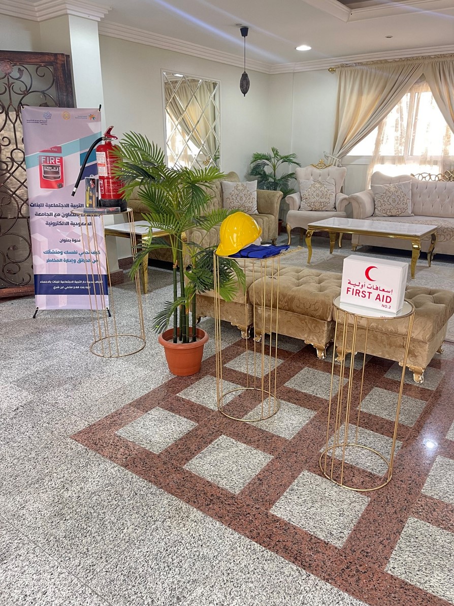 زار فرع الجامعة السعودية الالكترونية في الأحساء دار التربية الاجتماعية للبنات بالأحساء، وذلك لتقديم محاضرة توعوية بعنوان "كيف تحمي نفسك ومنشآتك من الحرائق وإدارة المخاطر"، حيث قدم المحاضرة مشرف الأمن والسلامة في فرع الأحساء الأستاذ فيصل الذكر الله.