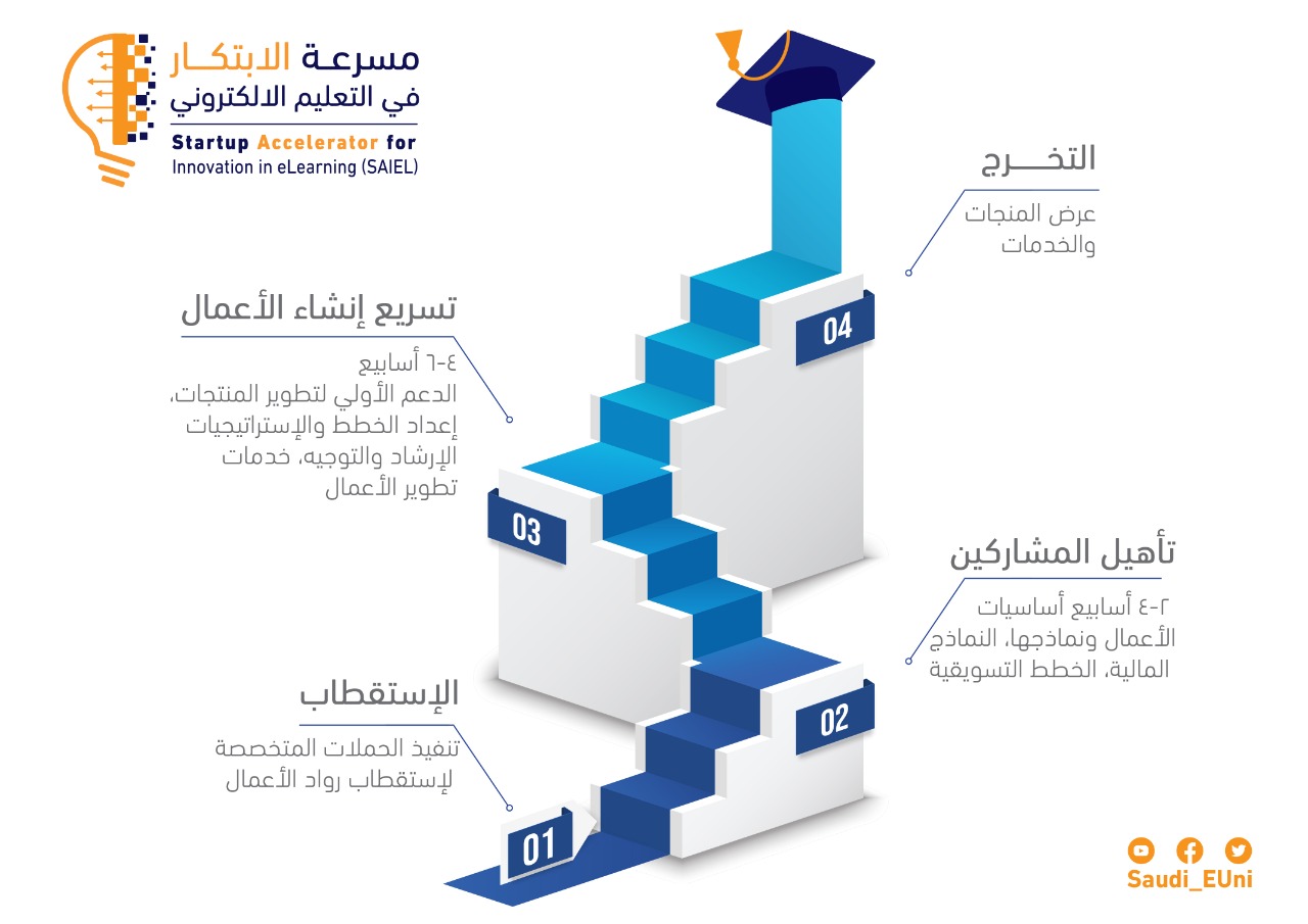 واستمرارًا لهذا التوجه وتحقيقًا لرؤية المملكة 2030 في دعم المؤسسات التعليمية المحلية لمواكبة التغيرات والتوجهات العالمية نحو التعليم الإلكتروني، تسعى الجامعة لتقديم برنامج "مسرعة الابتكار في التعليم الإلكتروني". هدف هذا البرنامج هو استكشاف قدرات طلبة الجامعة وأصحاب المشاريع في إيجاد حلول تقنية مبتكرة في مجال التعليم الإلكتروني يمكن احتضانها وتطويرها والاستثمار بها لتقديمها كمنتج أو خدمة تساهم في تطوير بيئة التعليم.
