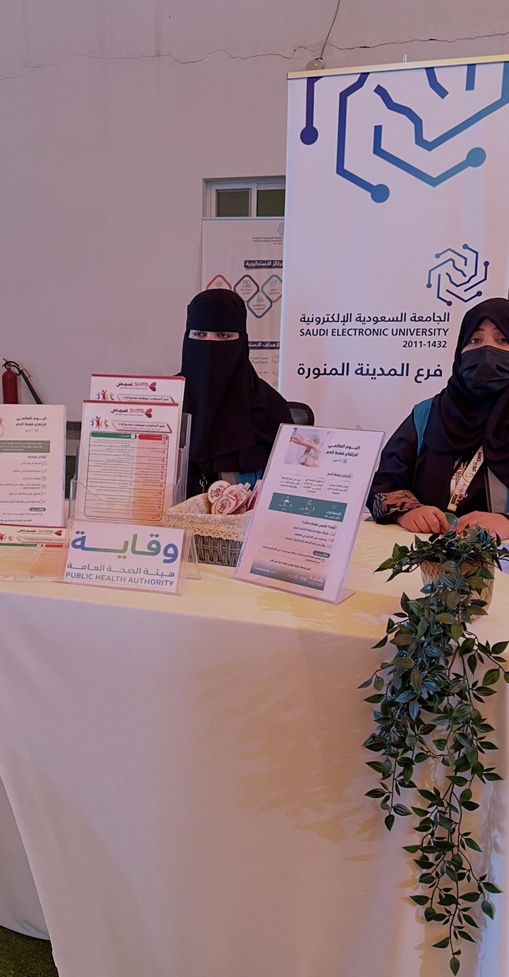 أقام مركز الجامعة السعودية الإلكترونية بالمدينة المنورة، بالتعاون مع وزارة الصحة ممثلة في برنامج «وقاية»، ركنًا توعويًا عن ارتفاع ضغط الدم والأمراض القلبية، استهدف طلبة ومنسوبي المركز، وذلك ضمن الجهود المشتركة لتعزيز الوعي الصحي ونشر الثقافة الوقائية داخل المجتمع الجامعي.