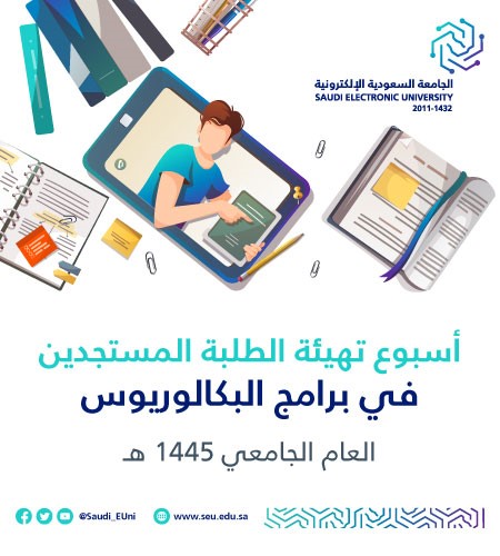 سعيًا من الجامعة السعودية الإلكترونية لتقديم تجربة طلابيّة مميزة، وتوضيحًا لكافة الأنظمة والخدمات الأكاديمية، يسرنا دعوتكم لحضور أسبوع التهيئة والذي سيتم من خلاله تقديم جولة على جميع خدمات الجامعة المتاحة لكم والإجابة على أسئلتكم واستفساراتكم بإذن الله.