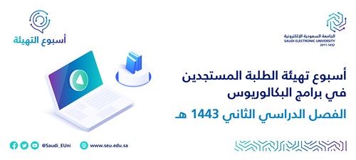 سعيًا من الجامعة السعودية الإلكترونية لتقديم تجربة طلابيّة مميزة وفريدة، وتوضيحًا لجميع الأنظمة والخدمات الأكاديمية، يسرنا دعوتكم إلى أسبوع التهيئة للطلبة للفصل الدراسي الثاني.