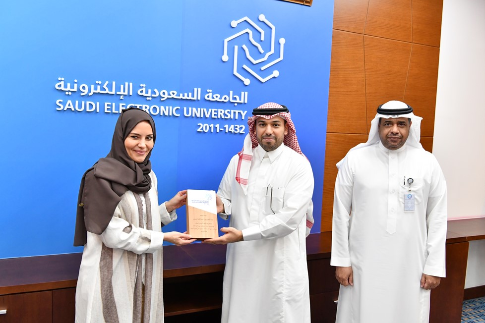 رئيسة الجامعة السعودية الإلكترونية تكرم الدكتور الأنصاري والدكتور البشر لجهودهما في تطوير الجامعة أكاديميًا وإداريًا