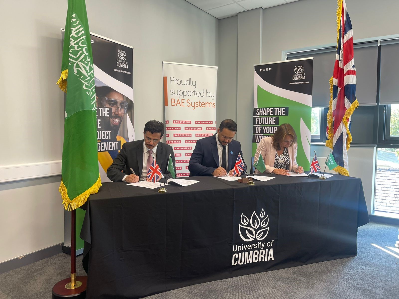 الجامعة السعودية الإلكترونية توقع اتفاقية التعاون مع جامعة كومبريا البريطانية وشركة BAE Systems لتنفيذ أول برنامج بكالوريوس إدارة المشاريع يعتمد على نموذج "التدريب المهني"