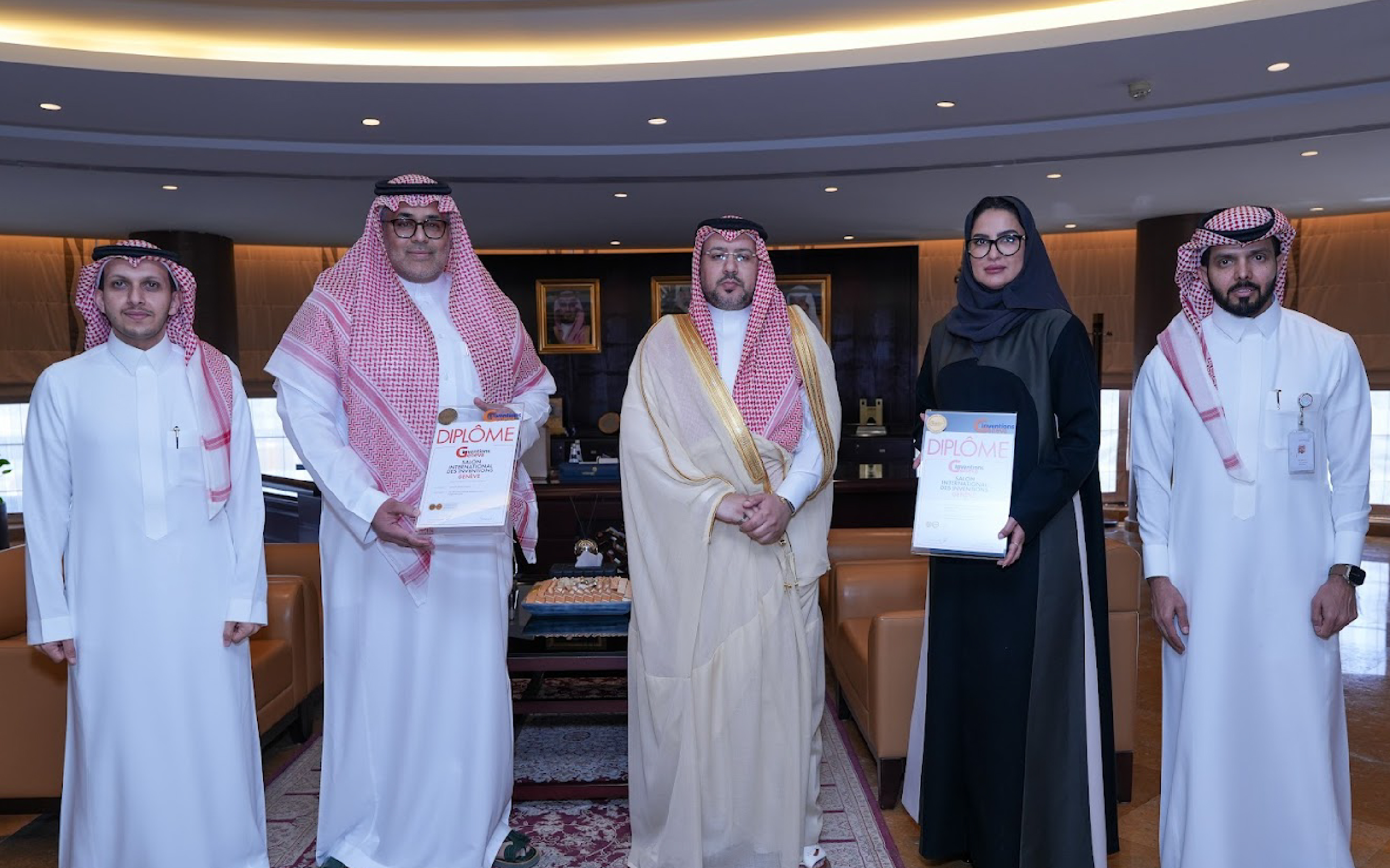 كما استقبل أ.د. محمد بن مرضي أعضاء الوفد المشارك برئاسة عميدة الدراسات العليا والبحث والابتكار د. نسرين فرحة، التي بدورها سلّمت جوائز الجامعة التي حققتها لرئيس الجامعة، والمتمثلة على الميداليتان الذهبية والبرونزية، لإضافتها إلى سجل إنجازات الجامعة، مما يعكس قوة منظومتها البحثية وريادتها في الابتكار العلمي على المستوى العالمي.