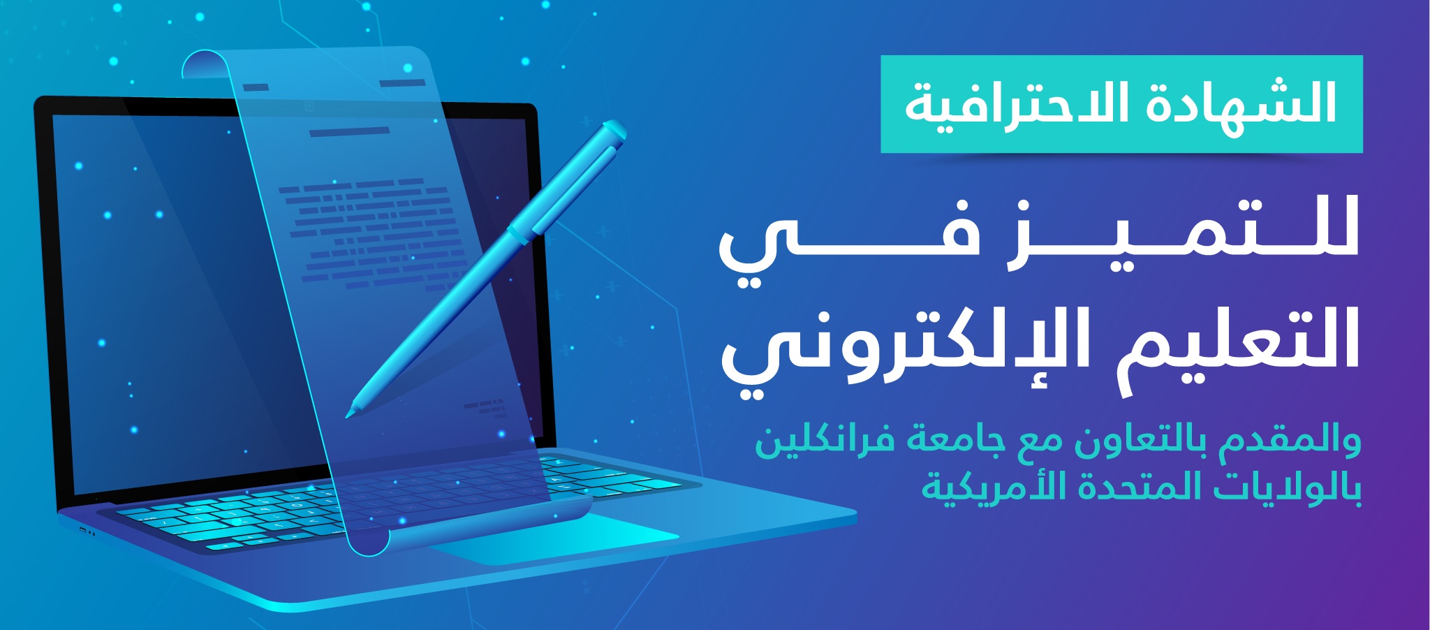 تحظى الجامعة السعودية الإلكترونية بمكانة متميزة على مستوى المملكة في مجال تقديم التعليم الإلكتروني وخدماته، ويسعى مركز الابتكار في التعليم الإلكتروني إلى تعزيز هذه المكانة عبر تقديم برنامج الشهادة الاحترافية للتميز في التعليم الإلكتروني بالتعاون مع جامعة فرانكلين بالولايات المتحدة الأمريكية. ويهدف البرنامج إلى تدريب أعضاء هيئة التدريس وإكسابهم المهارات اللازمة لمواكبة التغييرات والتوجهات العالمية نحو التعليم الإلكتروني ونقل أفضل الممارسات والحلول والتقنيات الحديثة في التعليم الإلكتروني. ويتألف البرنامج من دورتين يقدمها أساتذة وخبراء من معهد جامعة فرانكلين الدولي للتدريب المبتّكر ذي الخبرة العريقة في مجال التعليم الإلكتروني: