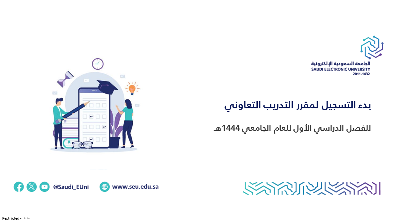 - لا يمكن تسجيل أي مقرر دراسي آخر في حالة تسجيل التدريب التعاوني