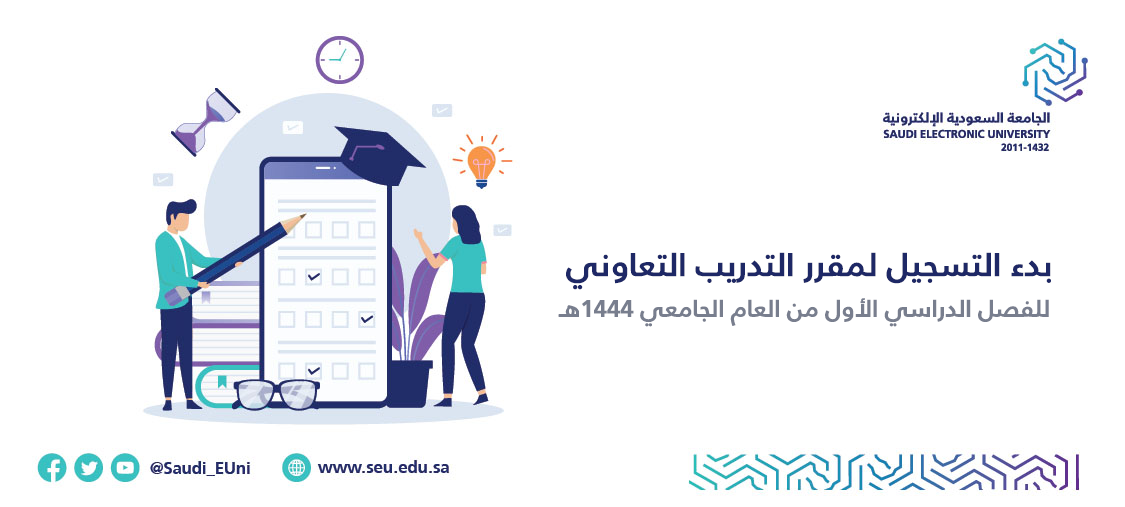 تعلن كلية الحوسبة والمعلوماتية عن بدء التسجيل لمقرر التدريب التعاوني للفصل الدراسي الأول للعام الجامعي 1444هـ،