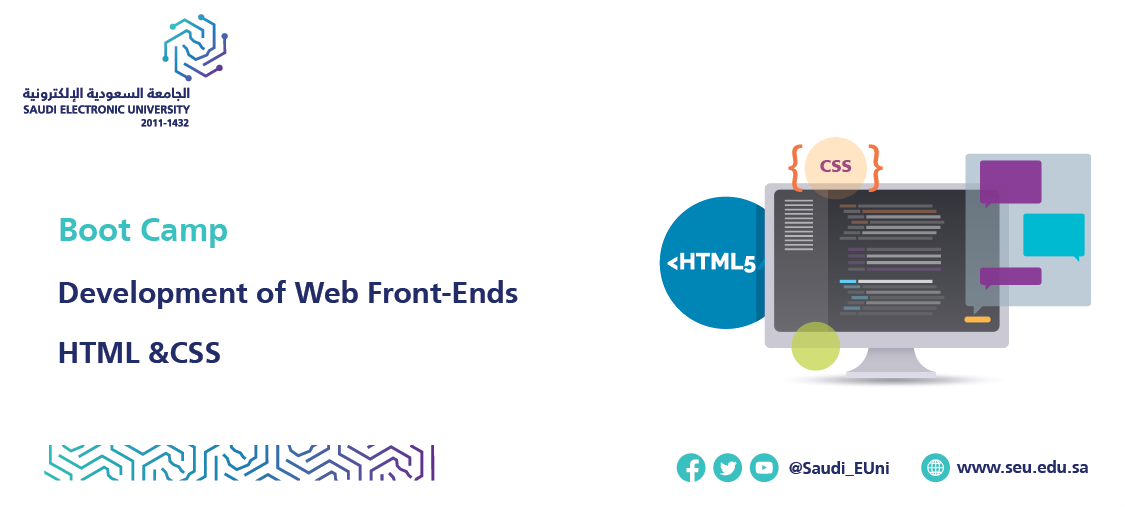 Saudi Electronic University Branch in Madinah in cooperation with the Deanship of Admission and Student Affairs invite you to attend A Bootcamp on: Development of Web Front-Ends HTML &CSS