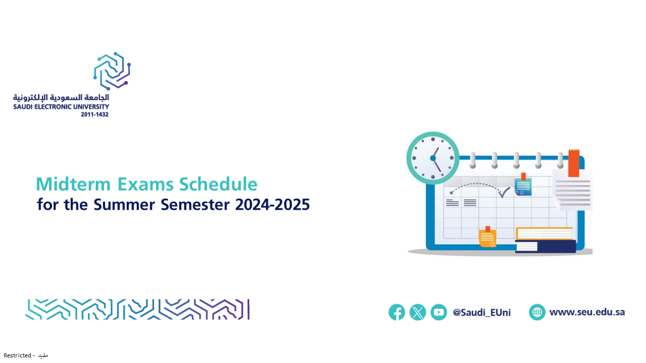 The Deanship of Admission and Registration announces the schedule of midterm exams for the summer semester of the academic year 2024 - 2025