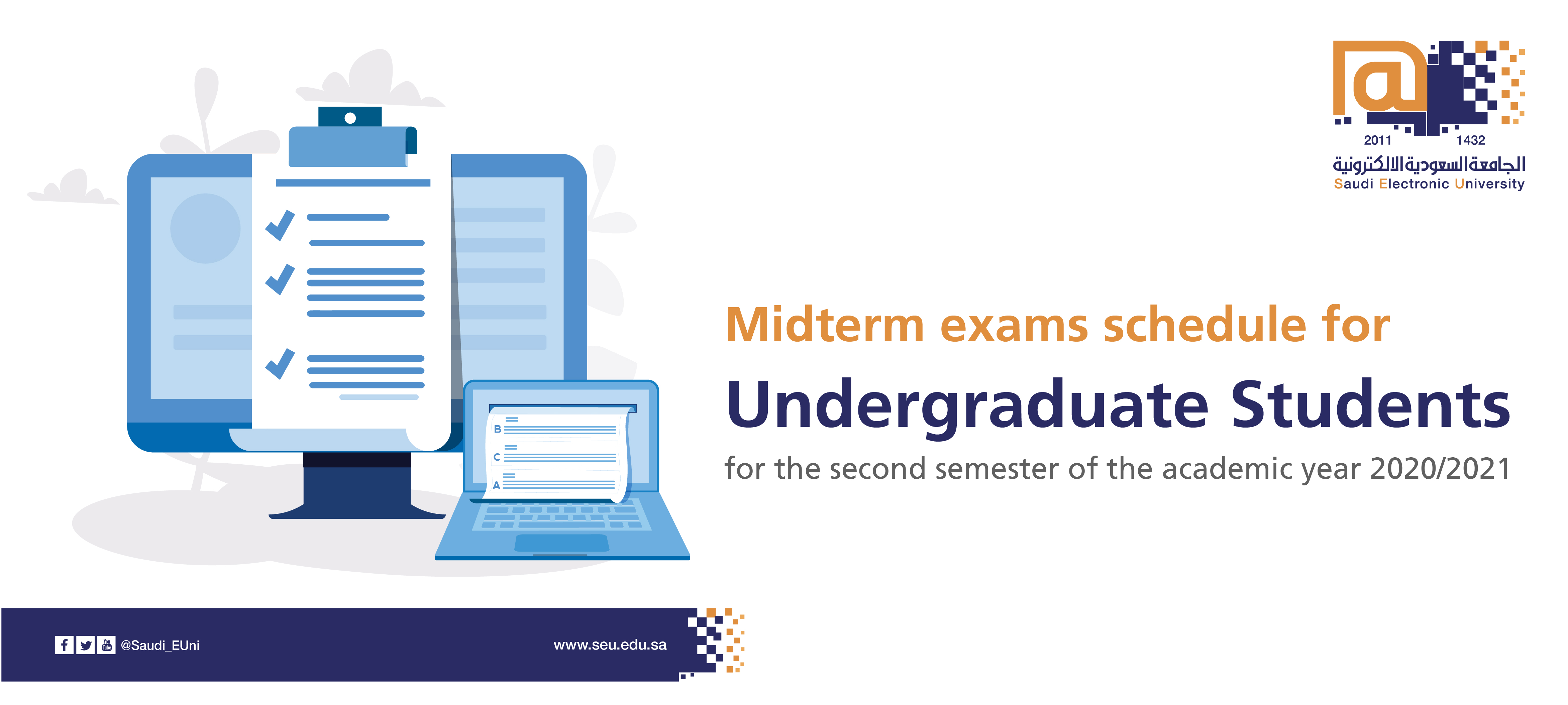 The Vice Presidency of Academic Affairs announces the schedules of midterm exams for Undergraduate students for the second semester of the academic year 2020/2021.